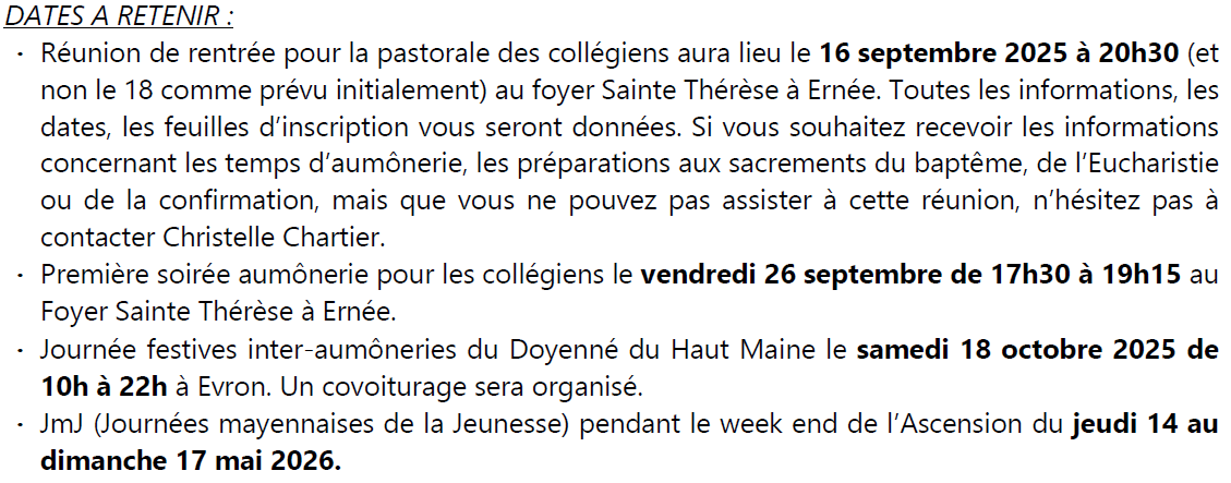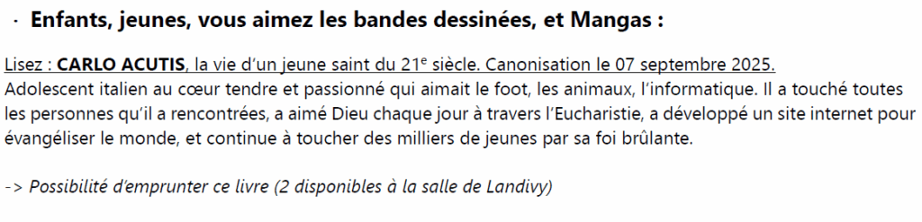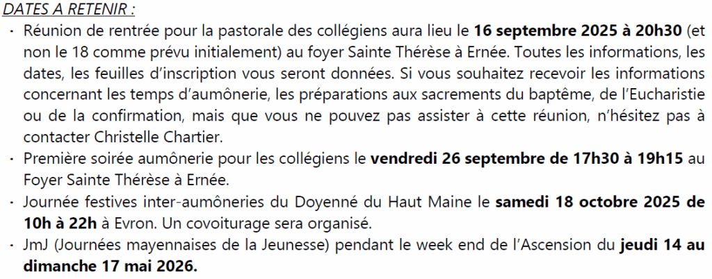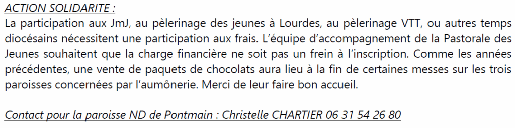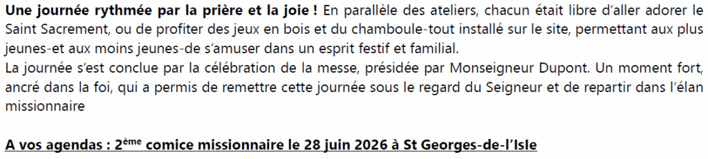 Page d'accueil » Bulletin paroissial » ACTUALITÉS … de la paroisse ACTUALITÉS … de la paroisse par Paroisse Notre Dame de Pontmain le septembre 1, 2025 dans Bulletin paroissial PASTORALES DES JEUNES COMPTE RENDU DU COMICE MISSIONNAIRE DU 6 JUILLET RENTRÉE … ET SI VOUS LISIEZ Article précédentAgenda septembre-octobre Article suivantÉdito de septembre-octobre