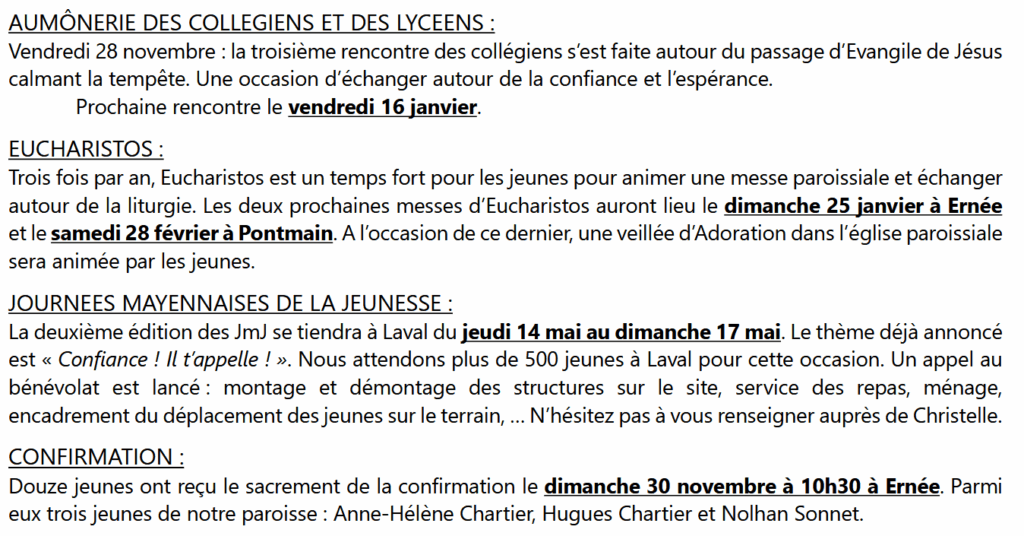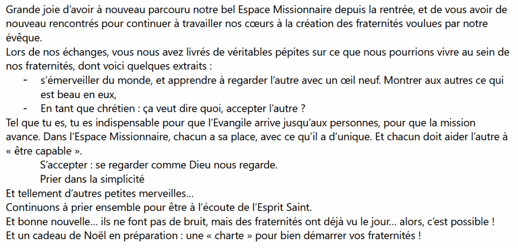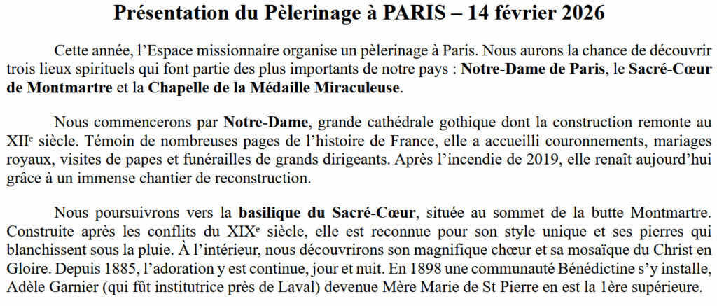 Page d'accueil » Bulletin paroissial » Chronique de l’Espace Missionnaire